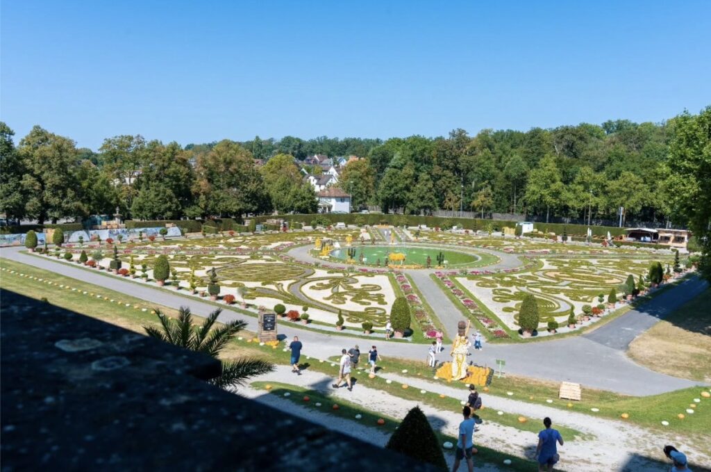 Ein zentraler Bestandteil des Schlosses sind die Gartenanlagen, die unter dem Namen „Blühendes Barock“ bekannt sind. Sie verbinden barocke Gartenformen mit modernen Elementen und saisonalen Events. Ein besonderer Besuchermagnet ist die jährliche Kürbisausstellung, die im Herbst im Schlossgarten gezeigt wird. Die gepflegten Anlagen werden von Besuchern zur Erholung genutzt und spielen auch für den regionalen Tourismus eine wichtige Rolle.