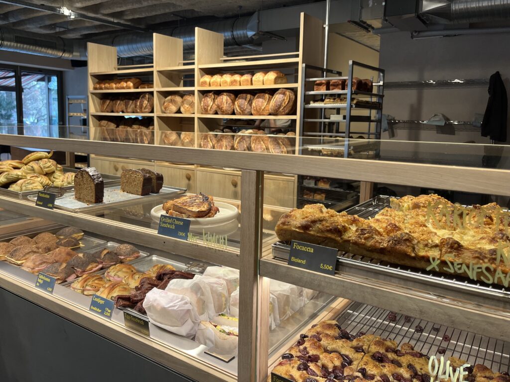 Alle Gebäcke kommen ohne Zusätze sowie ohne Hefe und Backpulver aus und werden nur durch den Sauerteig fluffig, erzählt uns ein Mitarbeiter.