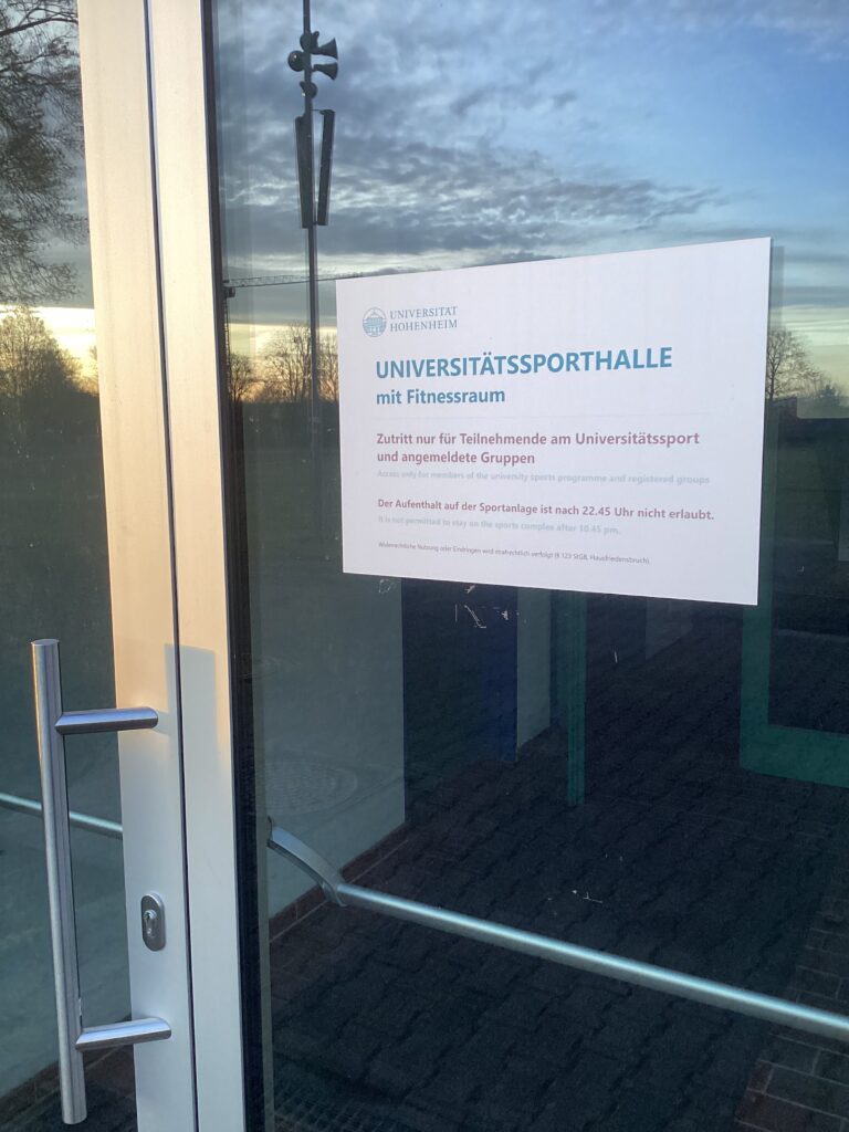 Auch wenn die Universität Hohenheim zahlreiche Sportanlagen bereitstellt, ist es dennoch nicht immer einfach, dort spontan oder unkompliziert Sport zu treiben. Viele der Plätze und Gebäude erfordern eine Einweisung, spezielle Schuhe oder eine vorherige Anmeldung. Das kann den Zugang zum Training erschweren.